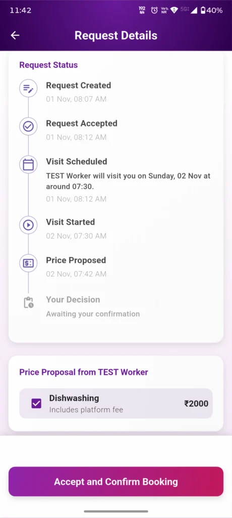 A housekeeper reviews your request, schedules a visit, and suggests a price for you to approve.